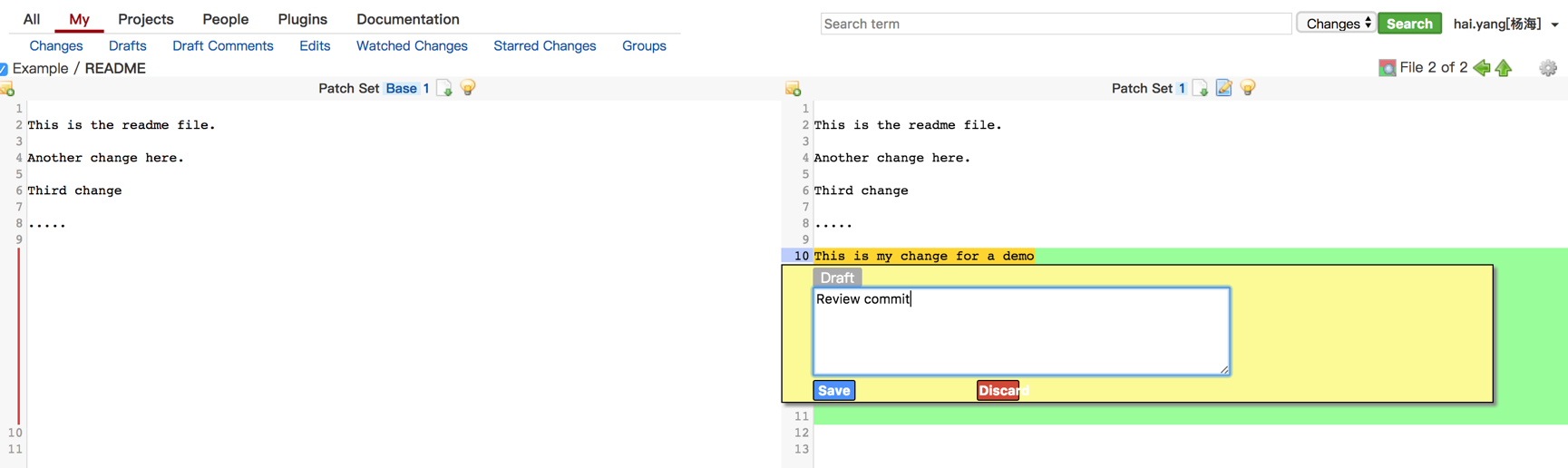 In previous example, after push the CL, the URL is http://gerrit.yuneec.com/#/c/7. You can open this URL with web browser.